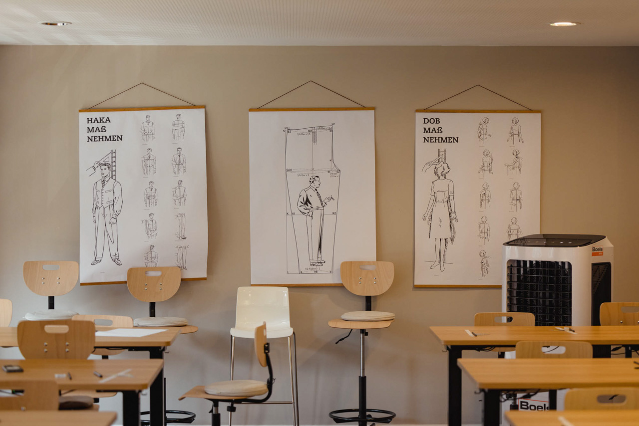 Jasmin Clausen: Unser Fokus liegt ganz klar auf dem Schnitt. Viele unserer Schüler*innen haben bereits eine Ausbildung zur Maßschneiderin oder zum Maßschneider absolviert oder ein Studium im Modebereich abgeschlossen. Im Vergleich zu Mode- und Designschulen arbeiten wir deutlich technischer: Bei uns steht die Schnitt-Technik im Zentrum, denn ein Design ist nur so gut wie der Schnitt, der dahintersteht. In der Praxis zeigt sich oft, dass Entwürfe auf dem Papier nicht so funktionieren, wie gedacht. Deshalb ist es unser Ziel, den Schnitt von Anfang an intensiv und verständlich zu vermitteln.